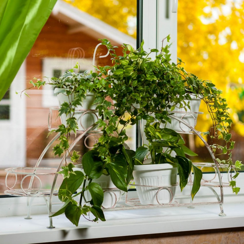 Плюсом таких моделей будет являться то, что цветы чувствуют себя довольно уместно, располагаясь на ярусных полочках. Они получают достаточное количество освещенности, за ними легко совершать уход, не вынимая горшки с полок.
