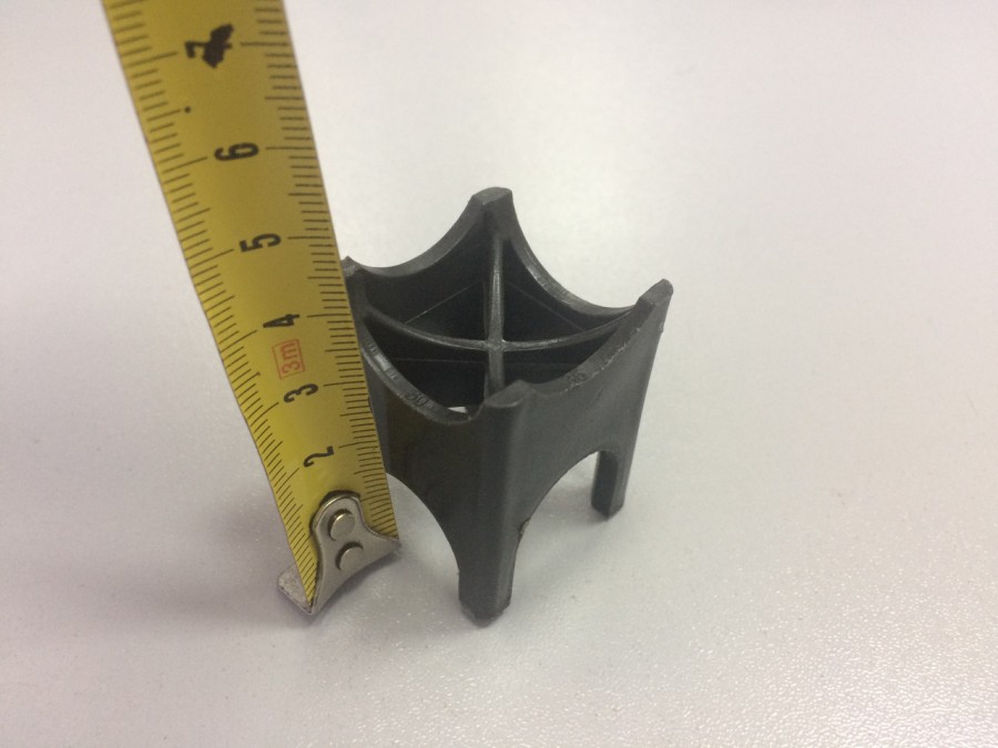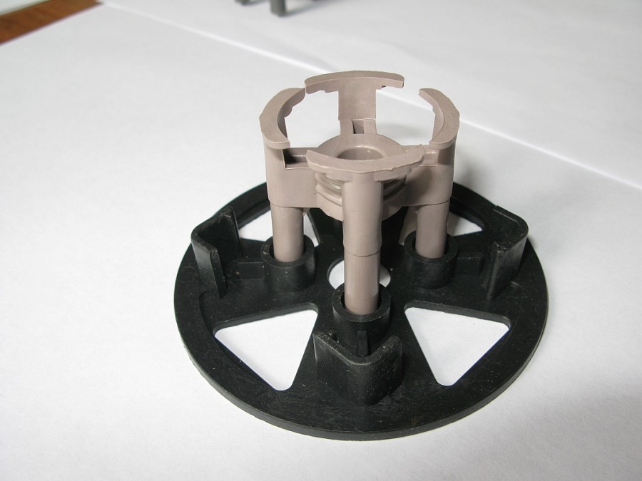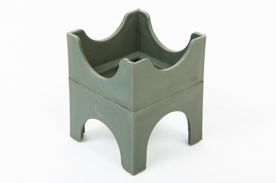 Этот тип фиксатора конструктивно похож на «кубик», различие только в цилиндрической форме, выдерживающей более сильные нагрузки. Отлично служит на нижних слоях арматуры, на неустойчивом, подвижном грунте. В комплекте дополнительно идет «основание», уменьшающие давление на поверхность. Фиксатор «стойка» используется с горизонтальными армирующими каркасами с диаметрами прутков до 16мм. Используя «стойку», есть возможно создавать конструкции с защитным слоем 12-40мм. Одна «стойка», с применением специальных креплений, может фиксировать и удерживать несколько рядов армирующего каркаса, параллельно фиксируя весь уровень конструкции.