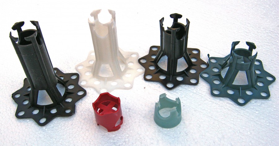Во время армирования применяются дополнительные детали — подставки для крепления металлических прутьев. Их изготавливают из пластика, называются фиксаторами. Обладают хорошими техническими показателями, пользуются спросом:
