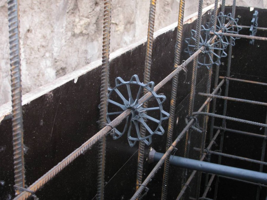 Для создания защитного слоя, необходимо обеспечить стабильное расстояние залегания арматуры в слое бетона. Расстояние должно быть минимальным, но достаточным для того, чтобы через поры бетона агрессивные вещества не “добирались” до стали (как правило 10÷40 мм). Для выдержки расстояния используют специальные конструктивные элементы. Главными требованием к таким элементам являются: