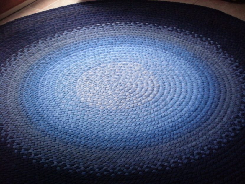 Вся работа состоит из нескольких этапов. Следуя представленной инструкции, у вас получится симпатичный коврик круглой формы: