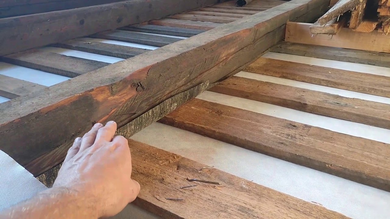 Для этой цели подойдет горбыль, не обрезная доска или другой пиломатериал, который обязательно обрабатывается антисептиками и крепится к обратной стороне балок. Часто для обработки досок чернового пола используют отработанное машинное масло.