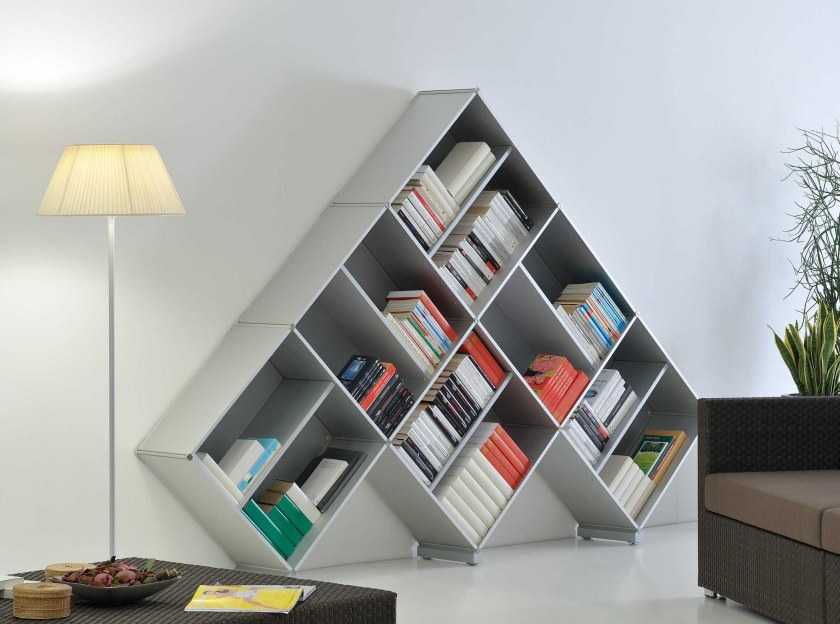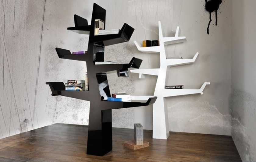 Вряд ли получится сделать навесные, так как книги весят достаточно много, а вот напольные – не проблема для умелых рук. Ниже представлены готовые варианты, которые помогут собрать достойный интерьер для любого дома.