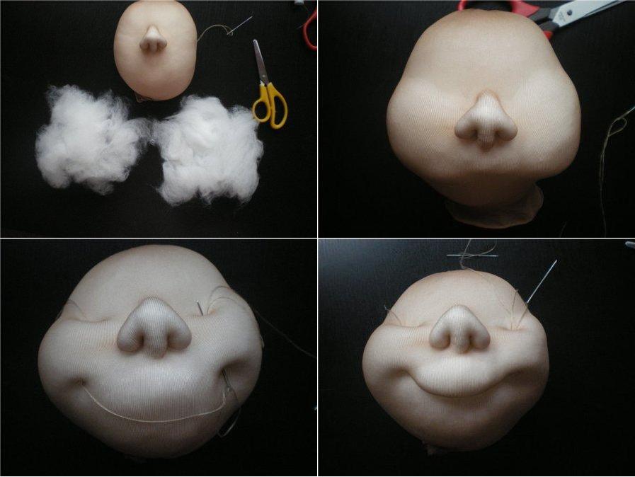 Как сформировать лицо куклы, как на представленных фотографиях? Это более сложно, потребуется тренировка. Порядок действий такой:
