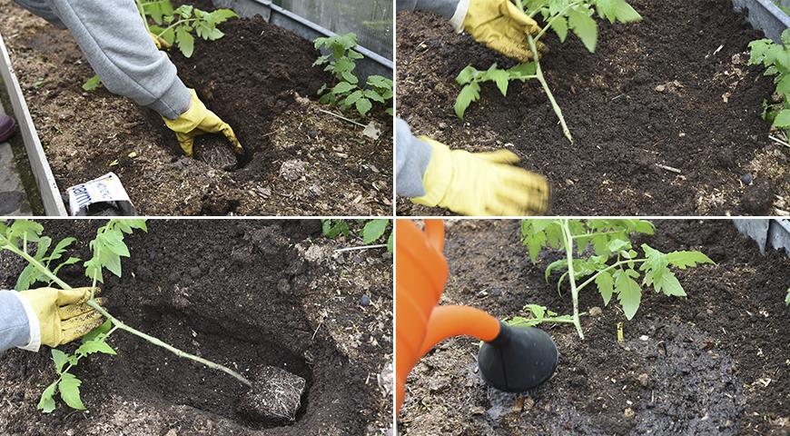 - Переросшую рассаду сажают наклонно, макушками к северу.