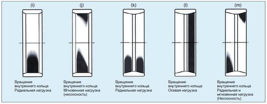 Когда подшипник вращается, дорожки качения внутреннего и наружного колец контактируют с элементами качения. Это приводит к появлению следов износа на элементах качения и дорожках качения. Необходимо осмотреть дорожки качения с точки зрения анализа работы подшипника, они отражают характер нагрузки и должны быть тщательно изучены после демонтажа подшипника.