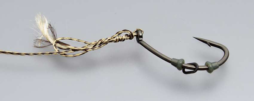Так поводок получится прочным. Волос, прикрепленный к стальному кольцу, будет свободно перемещаться по цевью крючка. Даже при выплевывании насадки в случае укола о крючок колечко быстро съедет вниз и крючок, оказавшись свободным, довольно глубоко проткнет губу рыбы.