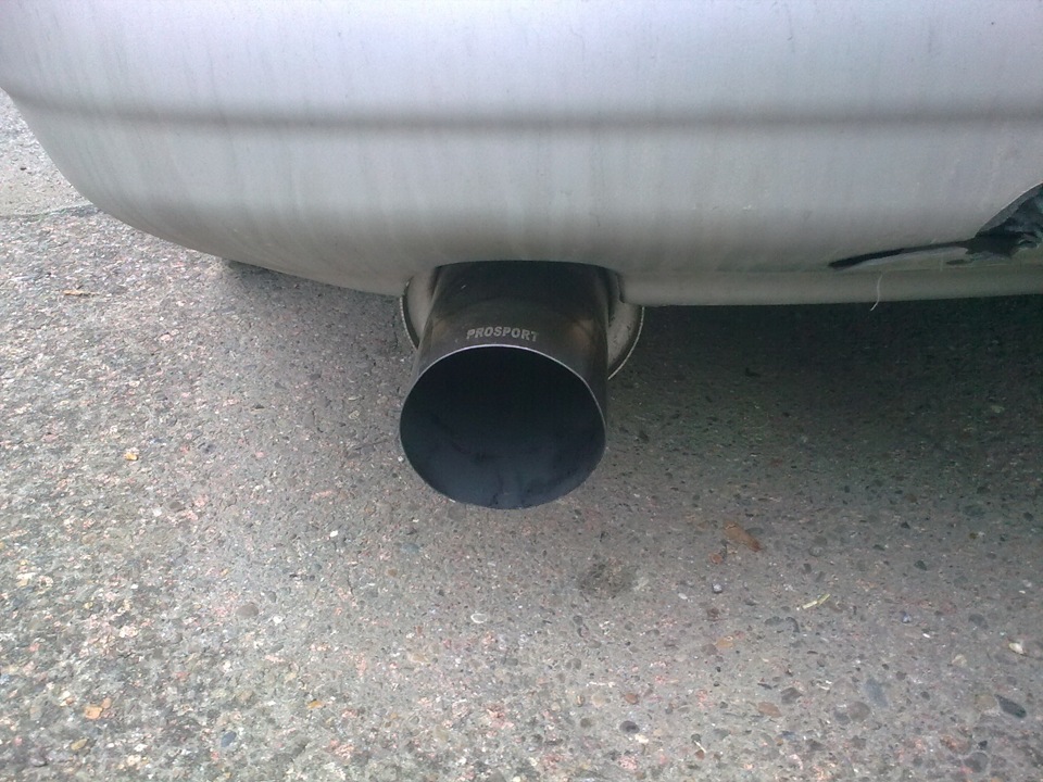 С удлинением заднего бампера, выхлопа совсем не было видно. Давно хотел себе насадку, но из — за кривой трубы и низкого бампера было трудно что то подобрать. И тут ещё не давно по Риге наваливал 200км.ч и расплавил заднюю юбку так как каталика нет, выхлоп ооооочень горячий)))