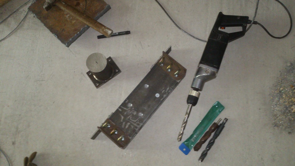 В общем сказано — сделано. Прикинул свои возможности и обзавелся необходимым материалом. В конструкции нет сварных соединений (все на болтах) как сварщик я не очень, да и болтовую конструкцию всегда можно быстро разобрать для перевозки например или переделки. Никаких хитрых инструментов для создания пресса не понадобилось дрель и болгарка, сверла больших диаметров