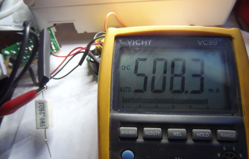 После снятия крышки проверяют напряжение. На выходе из драйвера напряжение составляет 220 вольт. Это значит, что он исправен и пытается засветить LED подсветку.