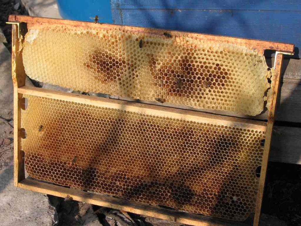 как листы вощины под тяжестью пчел нередко обрываются. В таком случае