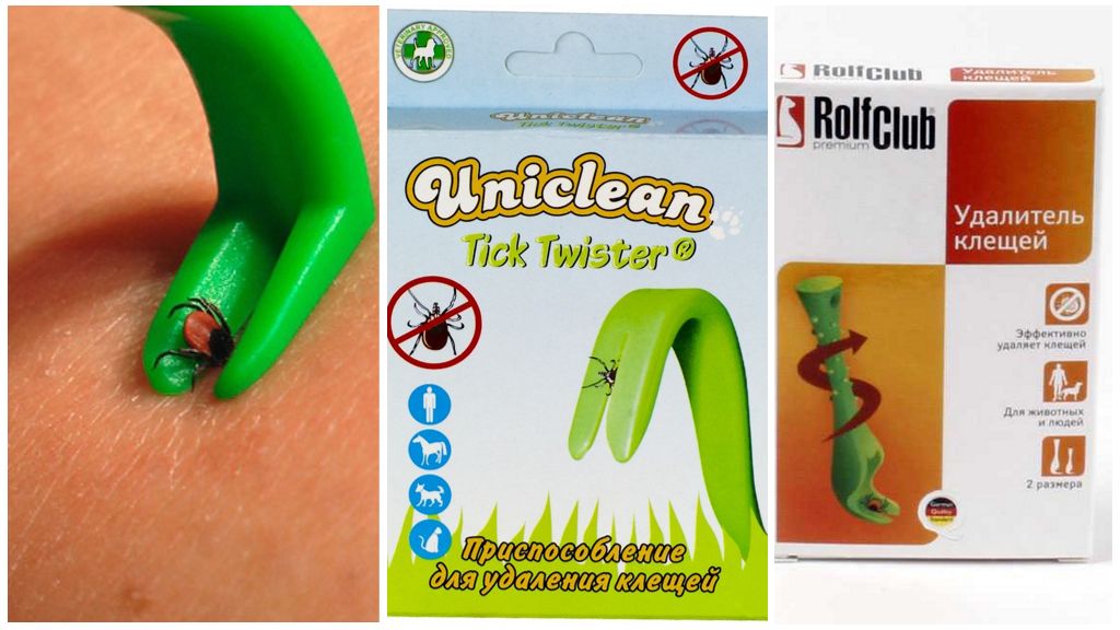 К таким приборам относятся крючки Uniclean tick twister, Trixie, Rolfclub, Антиклещ, Клещедер. Они очень удобны в использовании. Юниклин Тик Твистер позволяет извлекать паразитов без риска их сдавливания. Подобные приспособления еще называют выкручивателями клещей. Рольф клуб имеет удобную нескользящую ручку, похожую на рукоять отвертки. На конце ручки есть сквозное отверстие, чтобы можно было подвесить прибор на связку ключей или к ремню. Антиклещ представляет собой целый набор для удаления клещей из двух крючков, которые подходят для кровопийц любого размера.