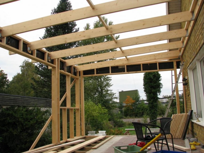 Несущие лаги должны быть крупными и изготовленными из качественного дерева, от них зависит прочность всей конструкции
