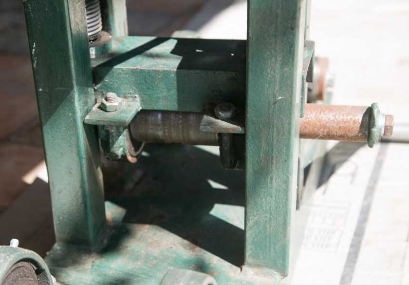 Если нужно увеличить усилие на воротке прижимного ролика, на него надевается труба нужного диаметра.