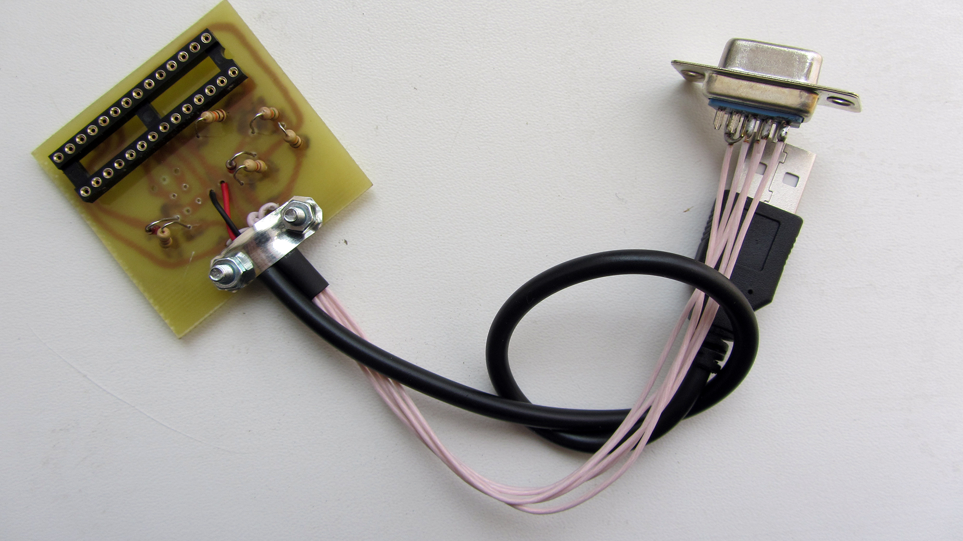 Если же возникают проблемы с приобретением данного кабеля, можно взять и перекрещенный кабель или удлинитель 9M-9F, но в таком случае может потребоваться обрезать разъем с другого конца, и вызвонив жилки по пинам разъема подпаяться непосредственно к плате программатора. У меня, кстати, был как раз такой кабель — удлинитель, и мне пришлось обрезать разъем со второго конца. Не покупайте кабеля для прошивки телефонов через СОМ порт, они не годятся для наших целей, так как там неполная распайка жил.