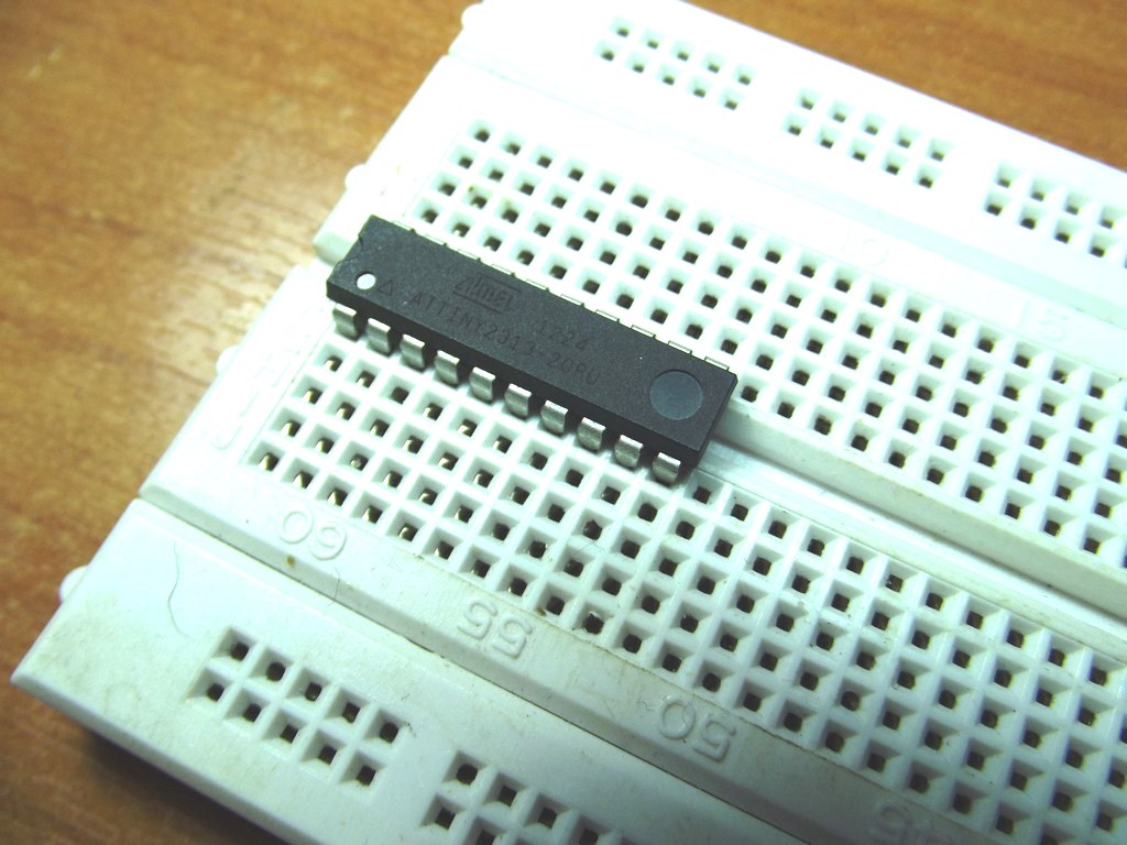 Дальше берем макетную плату с установленным на ней МК Tiny2313: