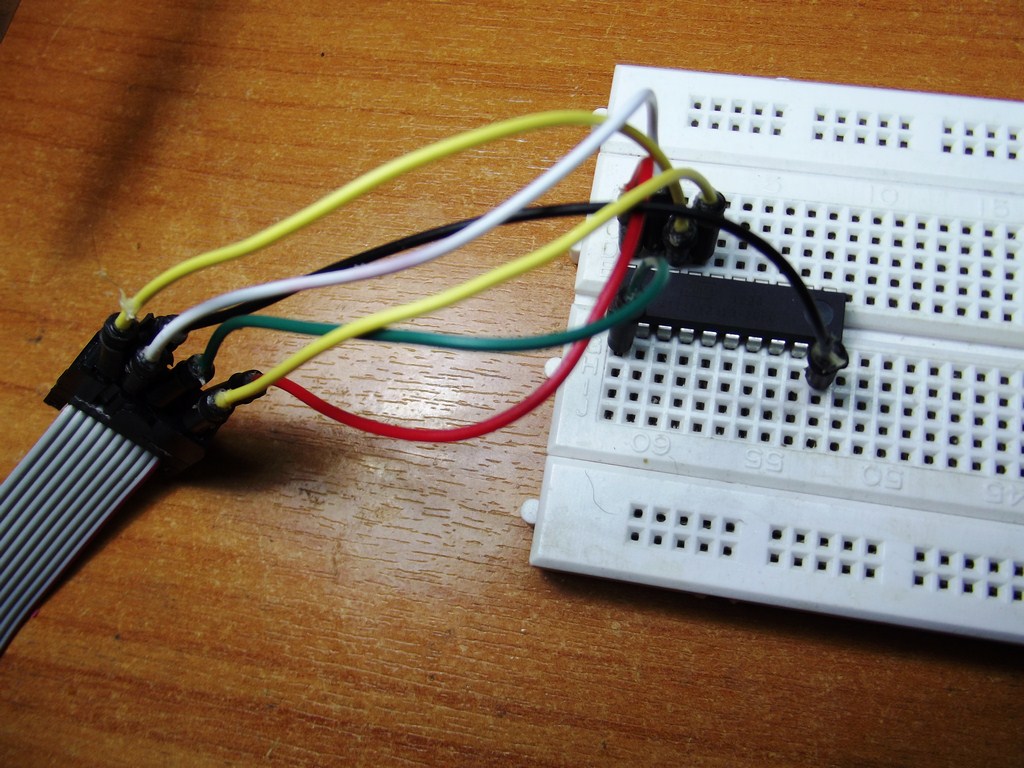 Итак, наша задача – соединить выводы МК с выводами программатора.