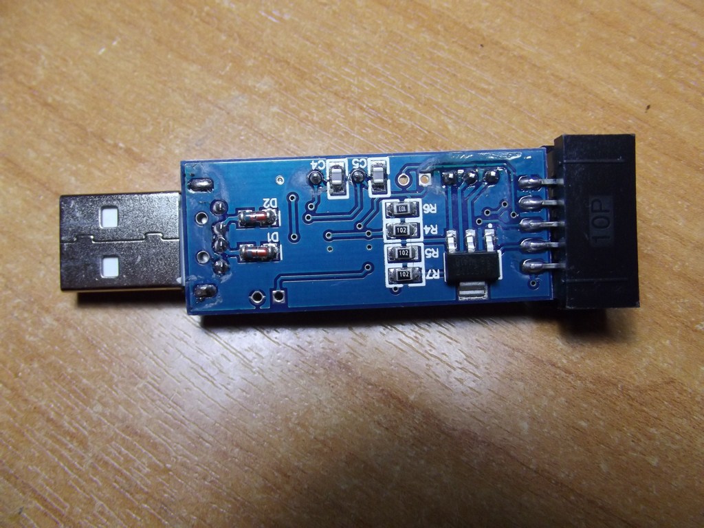 Если хорошенько порыться на Али, то можно найти очень сладкую цену на такой программатор. Например, здесь. Может быть найдете даже дешевле. Если будете брать у другого продавца, то внимательно смотрите, чтобы его надписи и радиоэлементы располагались именно так, как у меня на фото. В среднем его цена на момент написания статьи около 120 рублей. Такой программатор в корпусе обойдется чуток подороже.