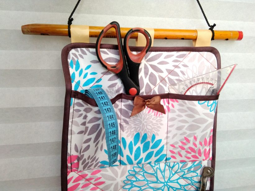 6. Органайзер. Нужная вещь для любой рукодельницы, любящей порядок на рабочем месте. Вариаций на эту вещь можно придумать много — как расположить карманы, можно украсить на свой вкус, комбинировать ткани и пришить липучки.