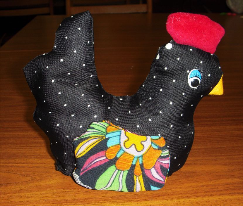 - выворачиваем нашу курочку, через отверстие набиваем её наполнителем. В качестве наполнителя можно использовать вату, пух, сухие травы.