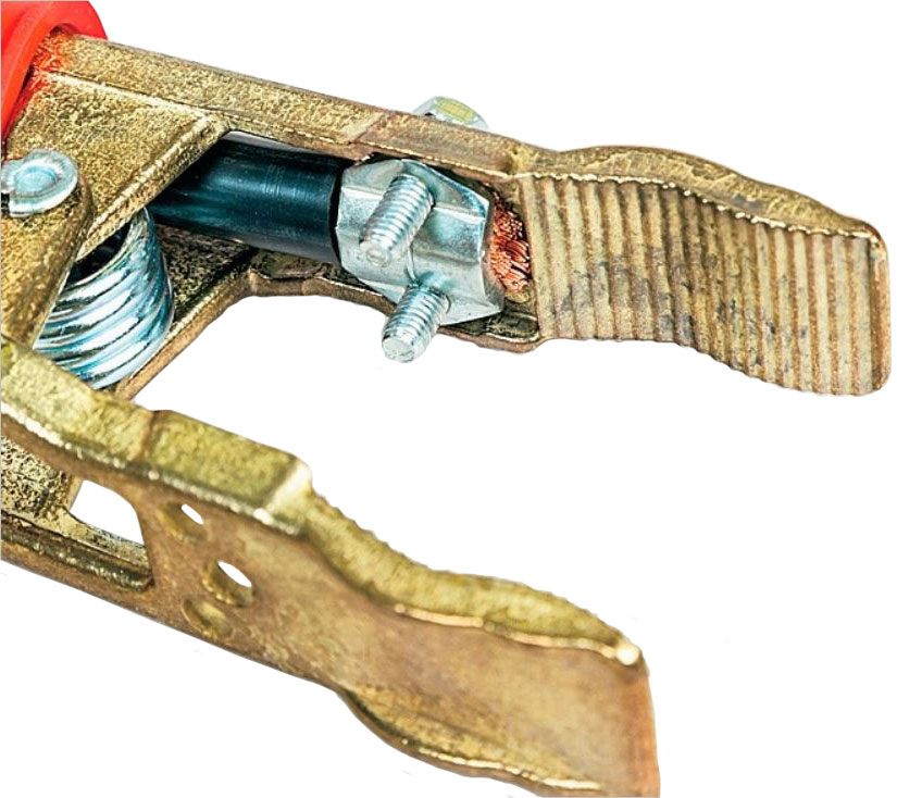 Еще один немаловажный момент для пусковых проводов — это “крокодилы”, то есть крепежи, которыми провода крепятся к клеммам. Оптимальным материалом для “крокодила” является медь, а по конструкции он должен обладать достаточной площадью для надежной фиксации к клемме.