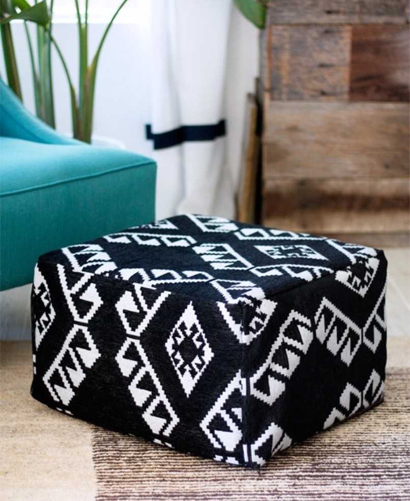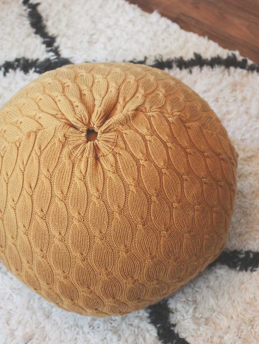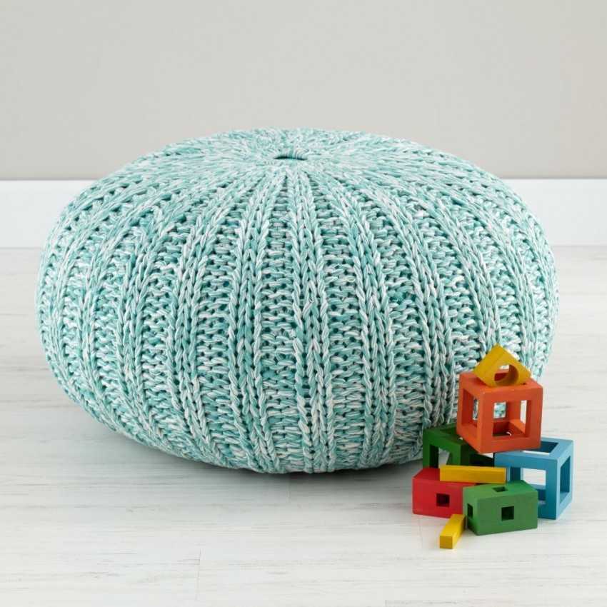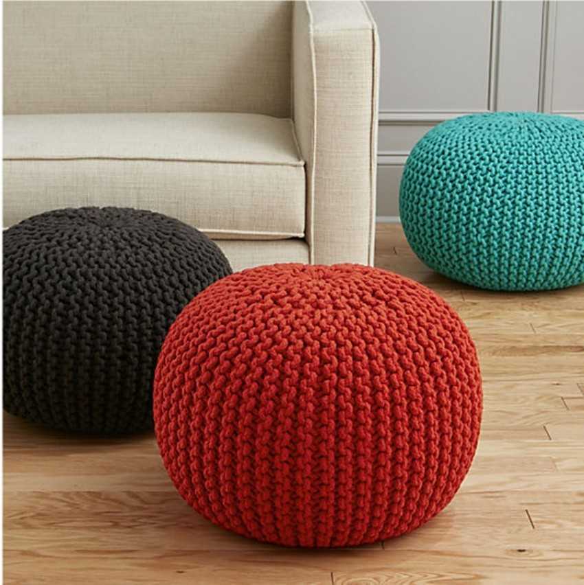 Можно декорировать пуфик плетеными узорами, а не тканью