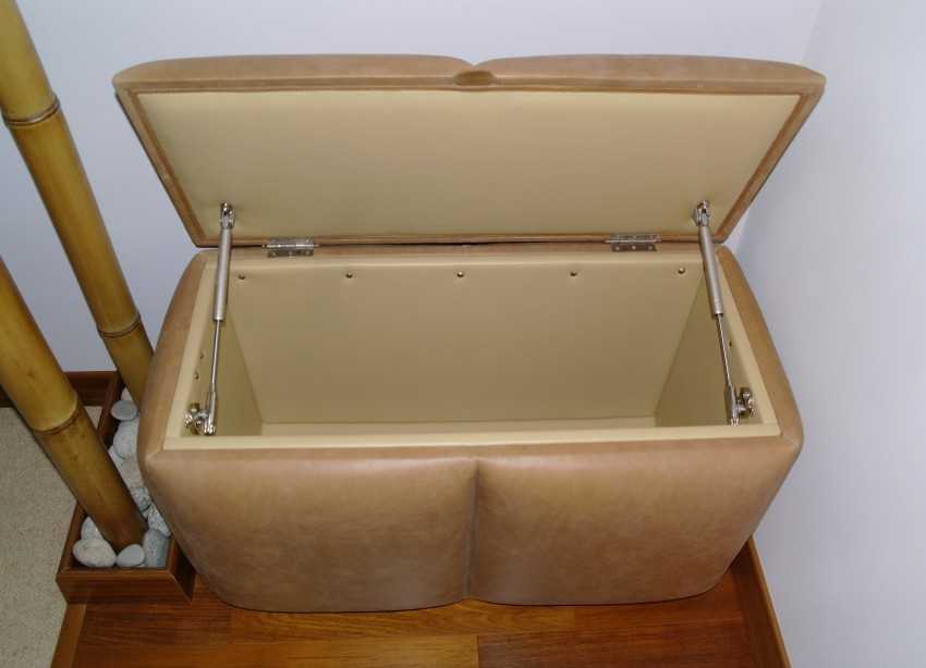 Пуфик-кушетка был придуман давно, но популярность его только растет. Эта модель часто оборудована специальными отделениями — идеальный вариант пуфика для хранения обуви в прихожей.