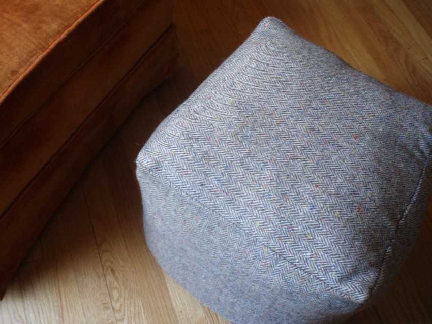 - Теперь дело за малым, шьём чехол из мебельной ткани. Желательно, чтобы он был на молнии, тогда вы сможете сделать несколько вариантов обивки и периодически менять внешний вид своего пуфика.