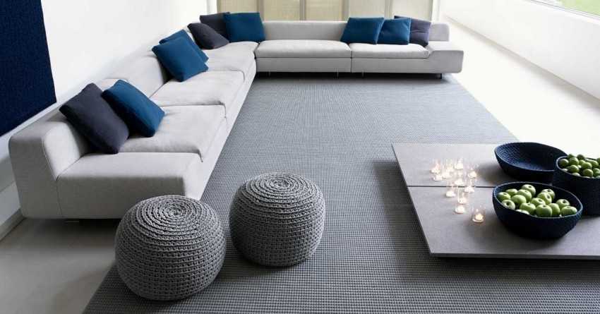 Для изделий, которые будут выполнять функцию мебели, лучше использовать плотные прочные материалы. Это может быть джинсовая ткань, плотный лен или же специальная мебельная ткань. Очень красиво смотрится пуф, обтянутый искусственным мехом. Такое изделие сразу придает помещению роскошь и стиль.