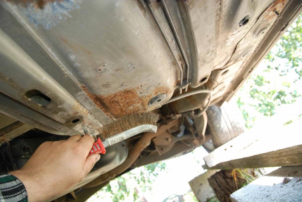 С автомашины демонтируют пластиковые предметы. Тщательно очищают кузов от грязи, пыли. Коррозийные пятна защищают наждачной бумагой. Затем проводят обезжиривание. Используют недорогой Уайт-спирит или его аналог. Затем разбавленным маслом покрывают металлические части кузова. Удобнее обрабатывать обычной кисточкой. Широкими мазками распределяют готовый продукт равномерно по всех площади.