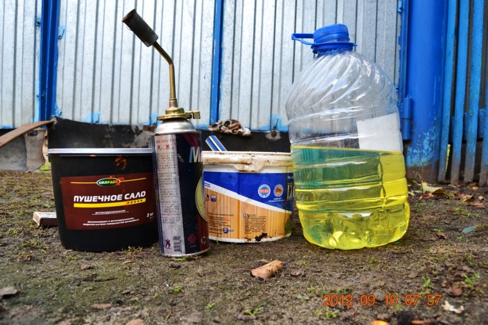 Чтобы качественно обработать машину, нужно подготовить пушечное сало выбранной марки в объеме 1-2 литра на один автомобиль, а также набор расходных материалов, инструментов: