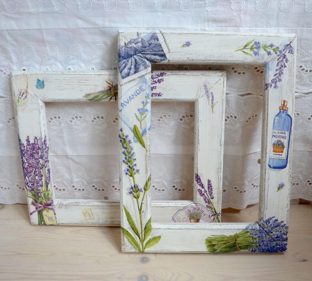 Окрашивание. Рамку из любого материала проще всего покрасить аэрозольными универсальными красками; при этом удобно использовать трафареты. Возможно применение различных техник; к деревянной поверхности применяют эффект состаривания.