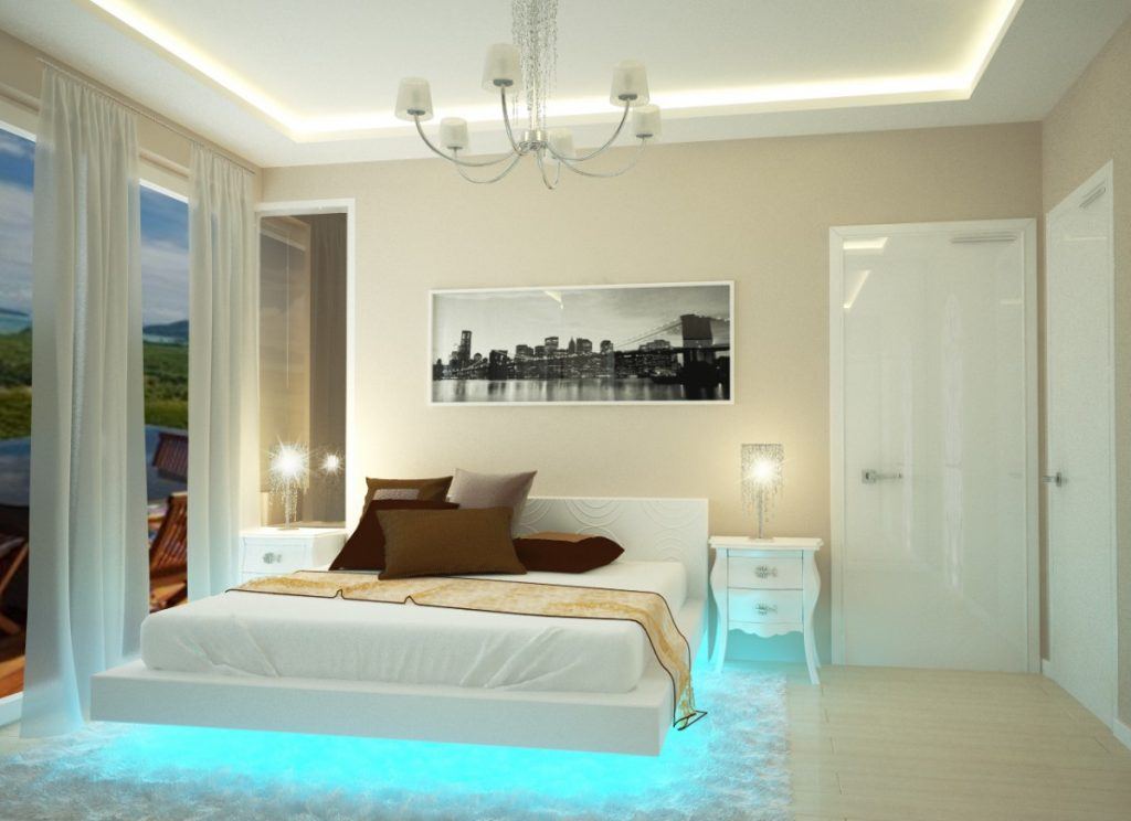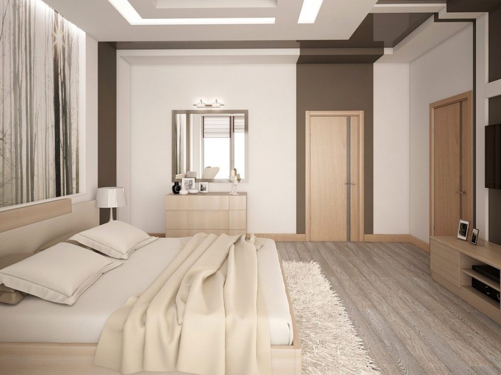 Идеи для современной спальни разные, но правило одно — приглушенные цвета и минимализм. Белый цвет прекрасно подходит для спальни любого размера, поэтому композиции в этом окрасе подойдут многим. Белый является нейтральным, поэтому он будет хорошо гармонировать с остальными оттенками, независимо от их насыщенности. Светлая спальня выглядит лучше всего в версии «тотальный вид», то есть фокусируется на цветах только в диапазоне белого, возможно, в разных тонах. Вы можете выбрать в таком цвете стены, текстиль, мебель для спальни и аксессуары
