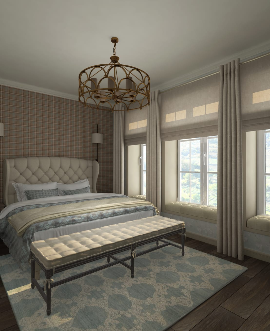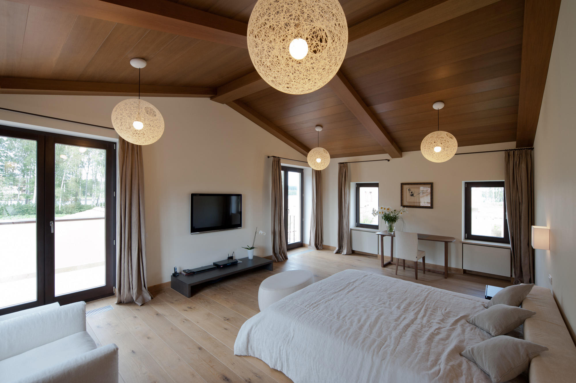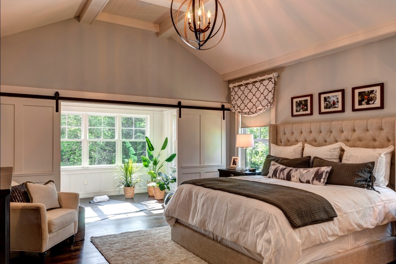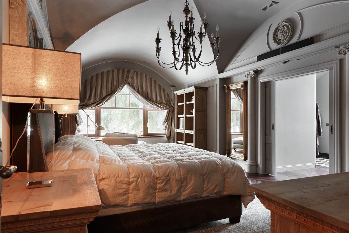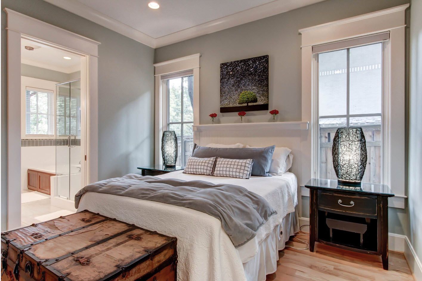 Такая спальня в доме должна быть просторной, оборудованной гардеробной или большим шкафом. Доступ к отдельной ванной также важен. Благодаря этому вы не будете бегать по утрам в поисках чистой рубашки или полотенца, не придется стоять в очереди, чтобы почистить зубы.