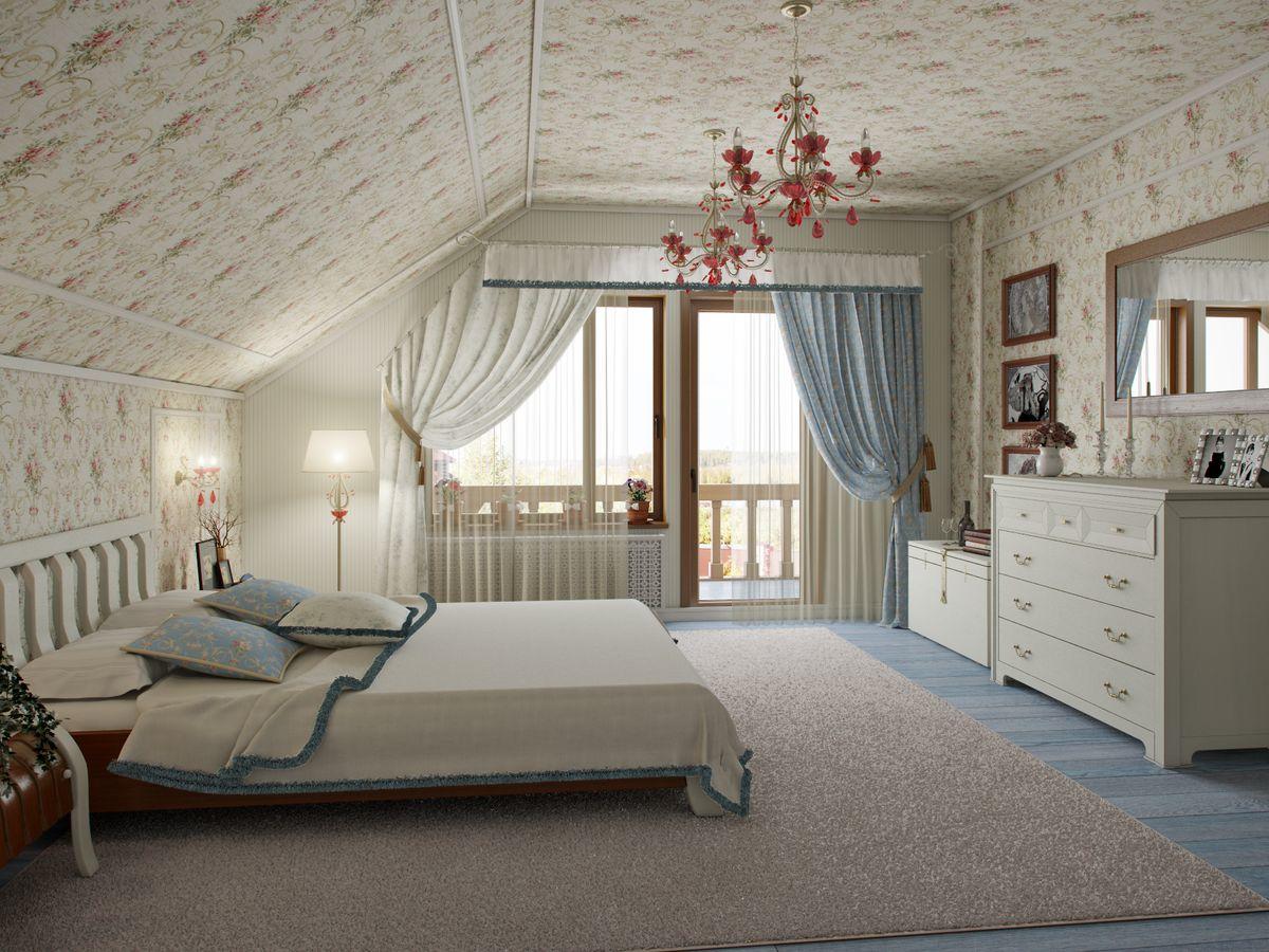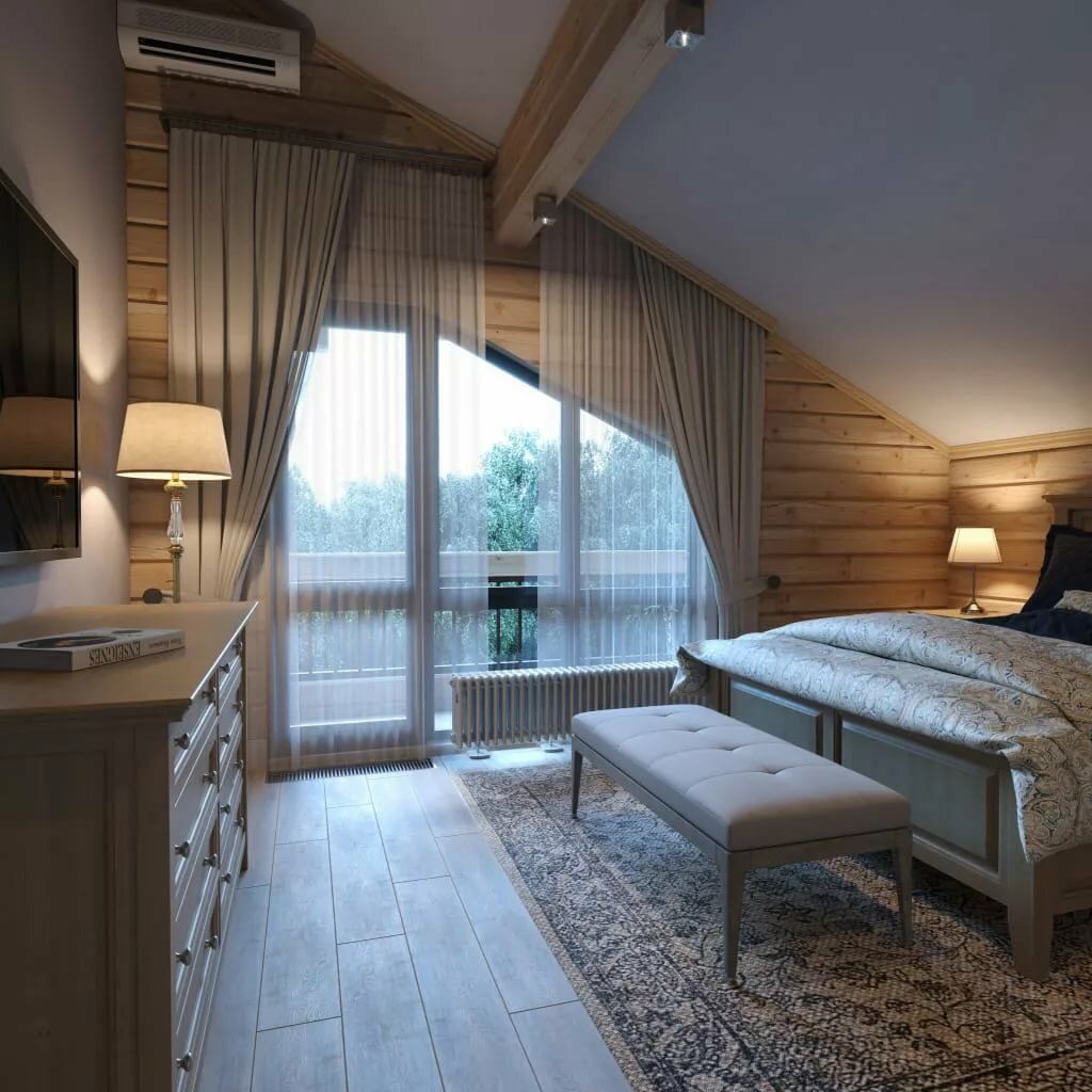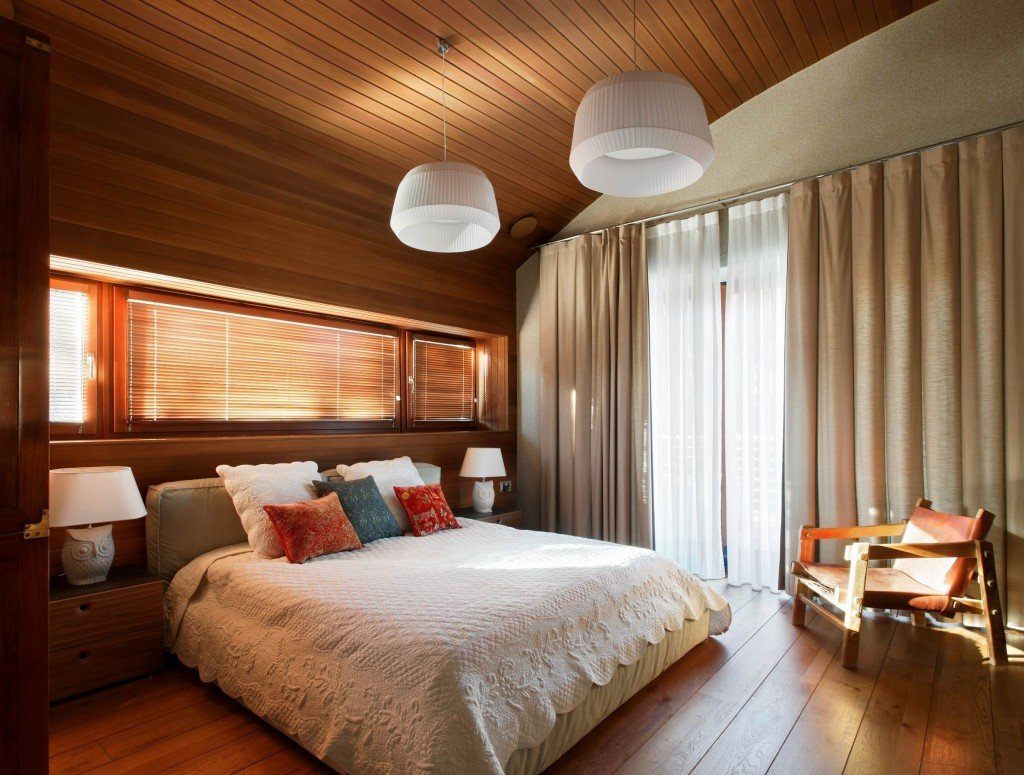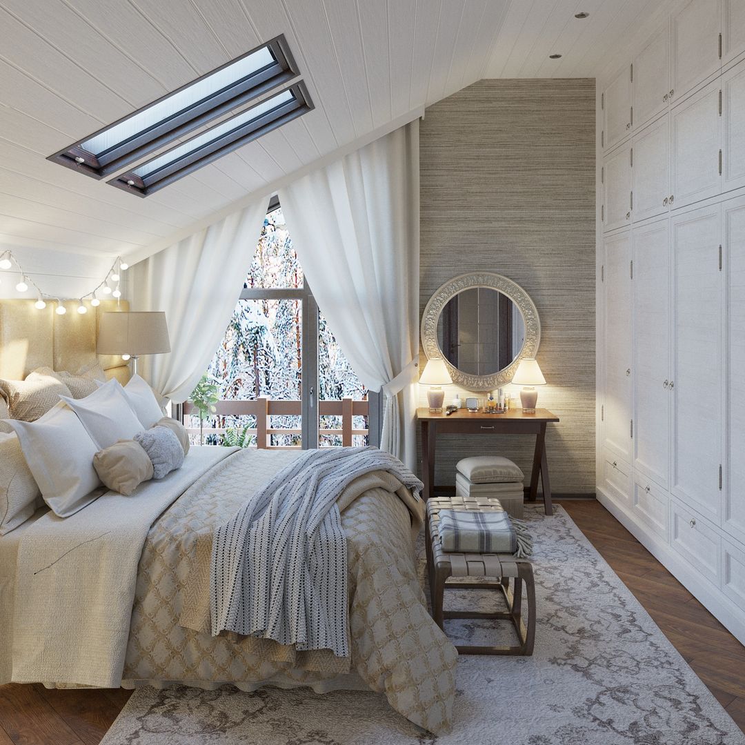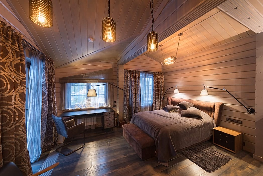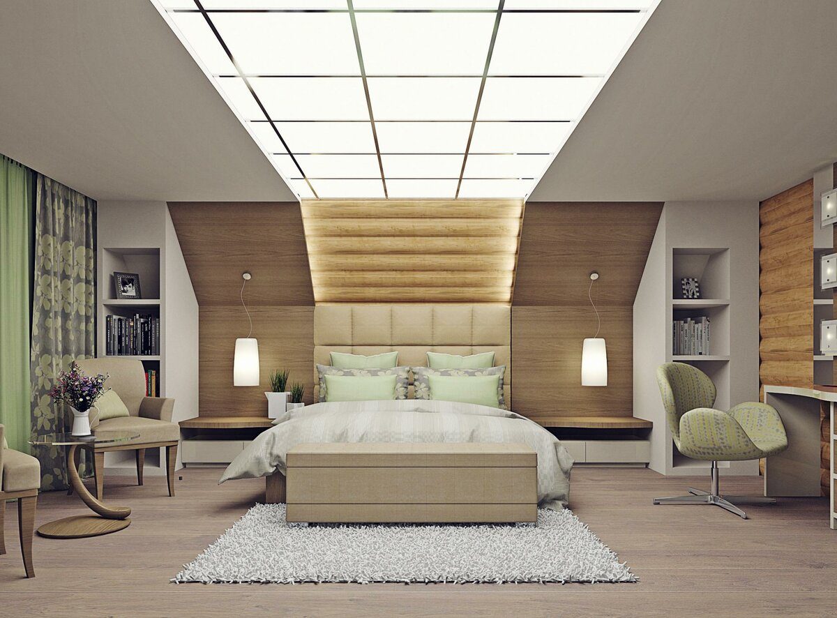 Дизайн спальни в частном доме вдали от гостиной и кухни