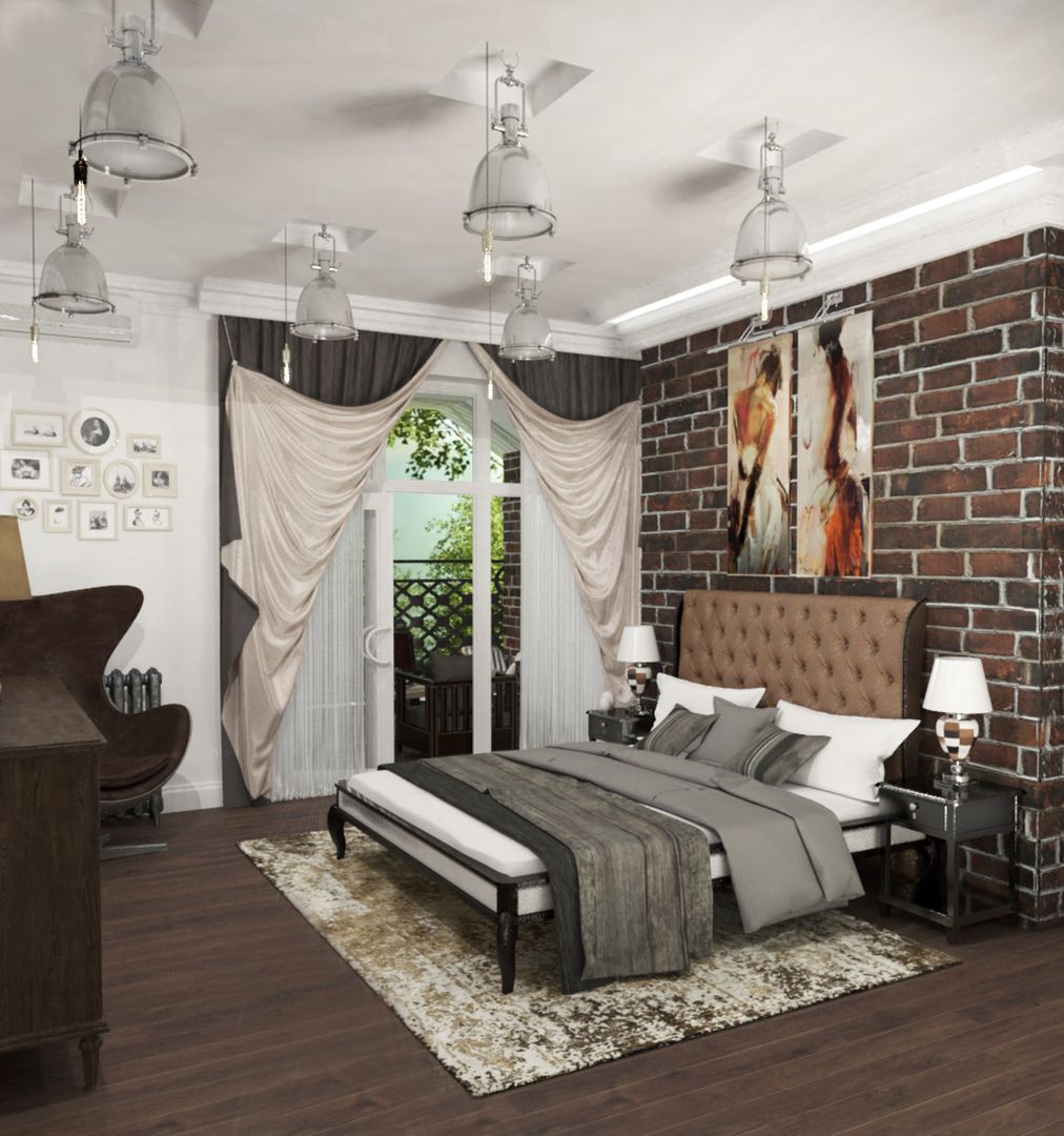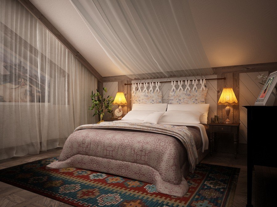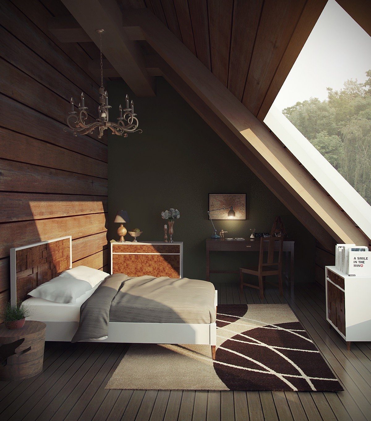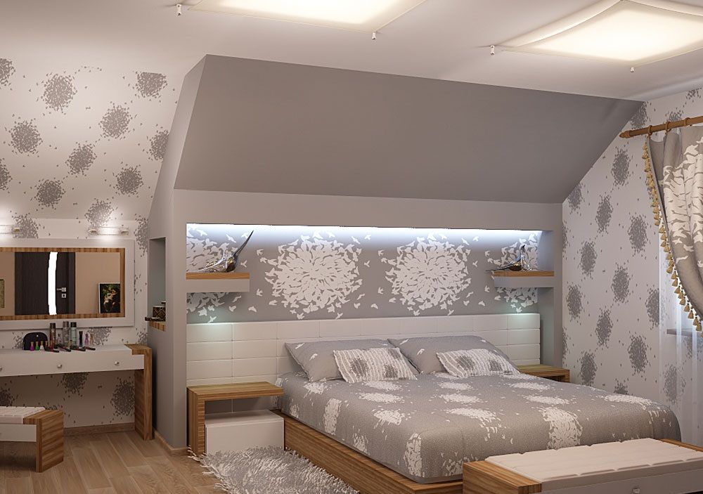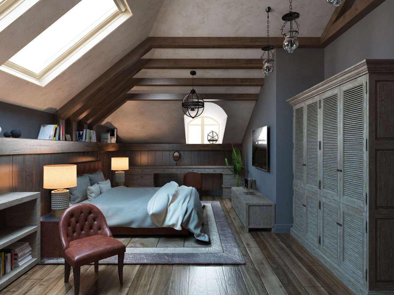 Дизайн спальни в частном доме вдали от гостиной и кухни