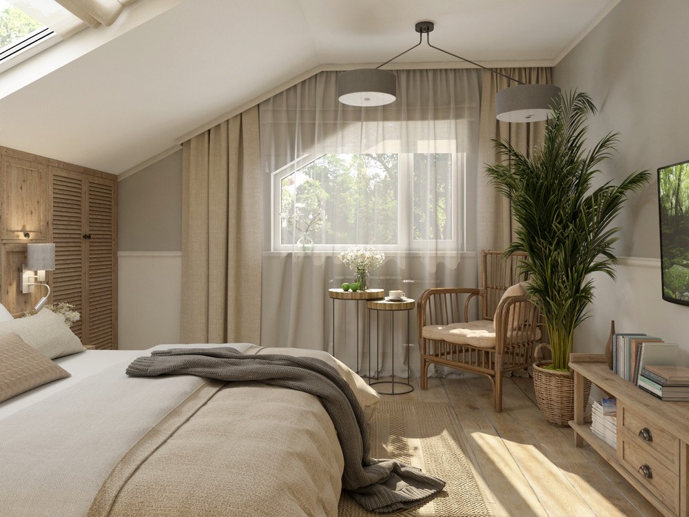 Начните со сторон света. Самое нейтральное расположение спальни — южное, так как пространство будет светлым и приятным. Спальня также может быть на западной стороне. Однако следует помнить, что летом такая комната будет нагреваться днем. Восток — хорошее решение только для ранних пташек. Летом солнце будет ярко светить с ранних часов. Худшее возможное решение — выбрать спальню на северной стороне спальни, так как она всегда будет темной и довольно мрачной, и это, безусловно, не поможет встать рано.