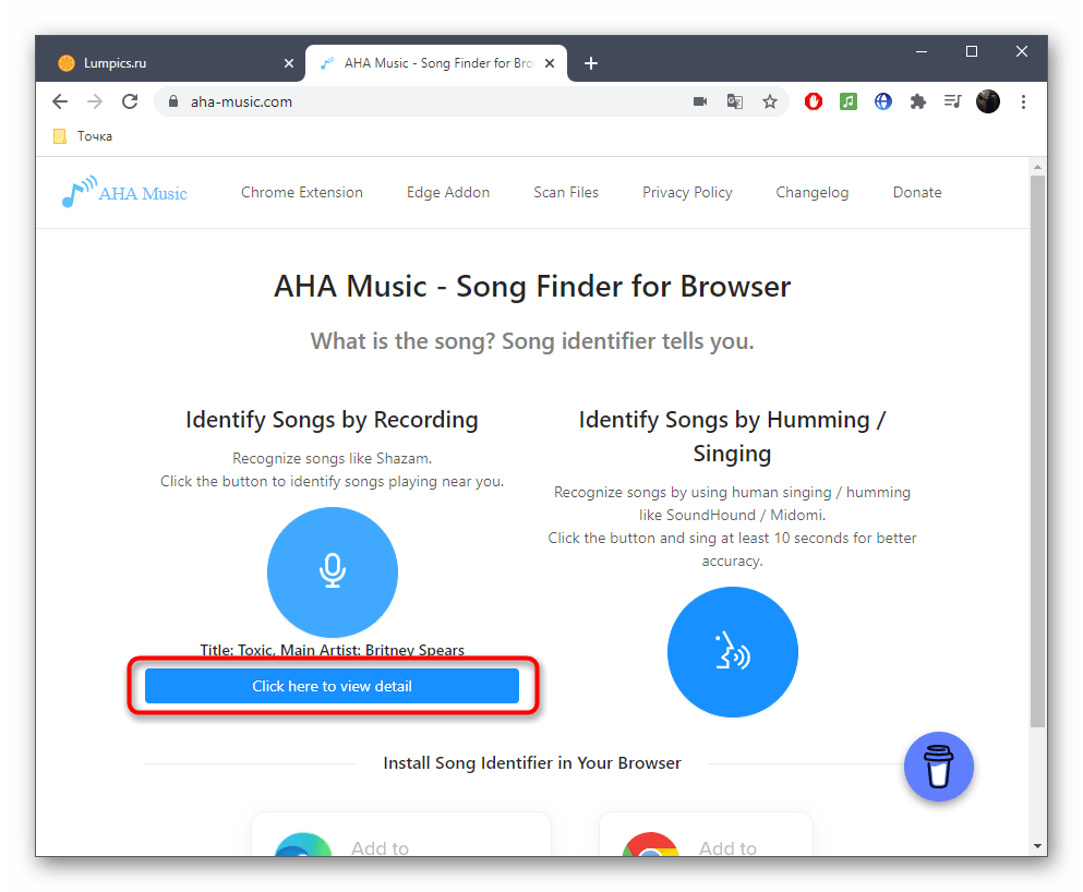 Функциональность онлайн-сервиса AHA Music сосредоточена на том, что инструмент позволяет включить трек рядом с микрофоном или напеть его, а он произведет автоматическое распознавание. Требуется лишь выбрать соответствующий тип распознавания на главной странице и начать воспроизведение, дожидаясь успешного распознавания, что обычно занимает всего несколько секунд. С проблемами столкнутся только те пользователи ПК, у которых нет микрофона.