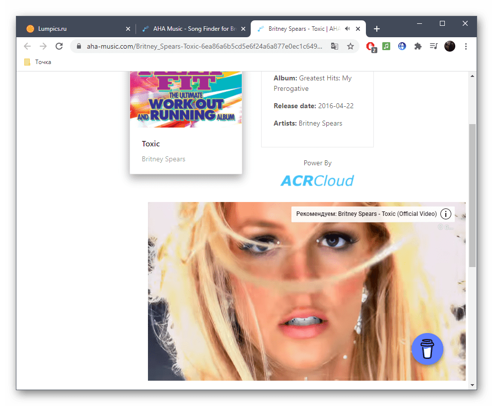5После окончания анализа страница обновляется. В зависимости от результата, на ней отображается либо имя исполнителя и название трека, а иногда и некоторая справочная информация о нем, или уведомление об не успешном поиске