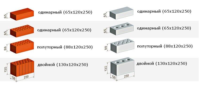 Типовые изделия: размер кирпича по стандартам