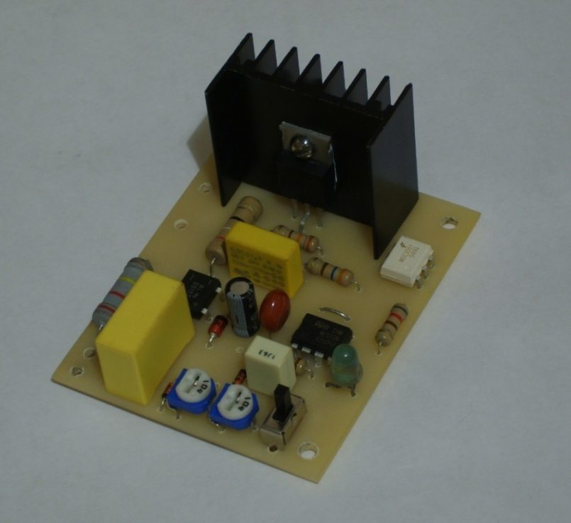 Внесу немного ясности о схеме. Схема симисторного регулятора мощности является типичной и в нее может быть включен любой, подходящий вам по параметрам симистор серии BTA, например BTA06-600, BTA16-600 и так далее. Номиналы элементов при этом пересчитывать не нужно. Работу схемы я описывал в статье «Диммер своими руками», и сейчас немного поговорим о другом.