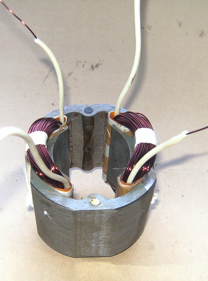 - Электродвигатель. В аккумуляторных инструментах применяются однофазные моторы коллекторного типа и постоянного тока. Двигатель представляет собой ротор, статор в виде магнитов, а также щеточный узел.