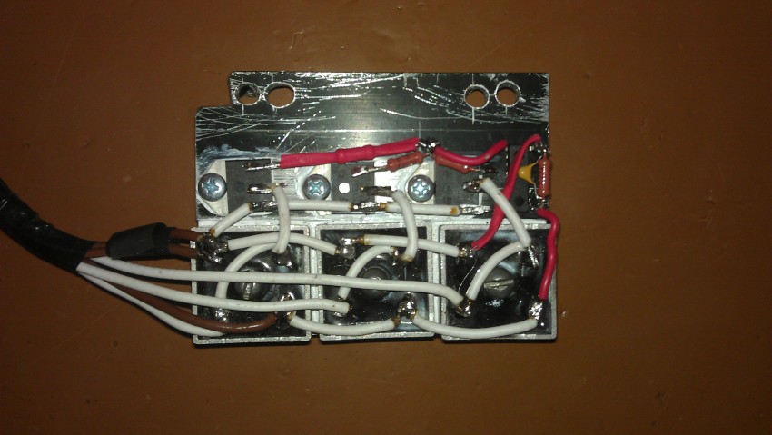 Основные компоненты конструкции представлены на фото.10 и включают: два подстроечных резистора для регулировки 2-го канала (№1) и 1-го канала (№2), три двухсекционных винтовых клеммника для выхода на 2-ой мотор (№3), для выхода на 1-ый мотор (№4) и для входа (№5).