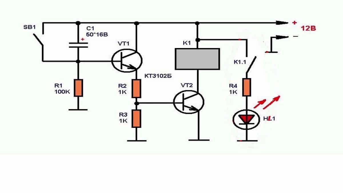 Принцип действия такого реле времени основывается на использовании полупроводниковых приборов для задачи временного промежутка. На практике могут использоваться схемы как с одним транзистором, так и с большим числом. Наиболее актуальные для самостоятельного изготовления реле времени на двух транзисторах – они характеризуются лучшей стабильностью и управляемостью.