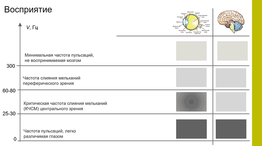 - Мерцание лампочки или светильника. Интенсивность может быть разной, но изменение яркости создает дискомфорт для зрения.