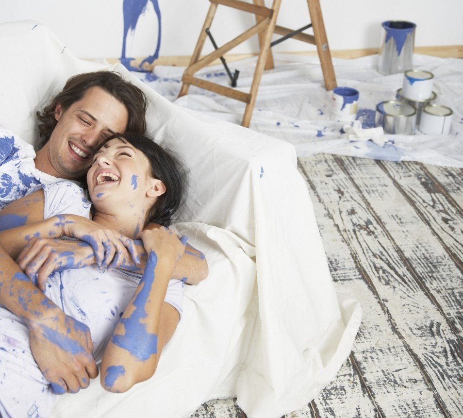 - Проведение отделочных работ. Эти работы тоже должны проводиться в определенной последовательности. Покраска (побелка) потолка проводится в первую очередь, затем осуществляется финишная отделка стен. Это может быть покраска, декоративная штукатурка или наклеивание различного вида обоев. Напольные покрытия любого типа укладываются в последнюю очередь, то есть когда потолок и стены уже обновлены.