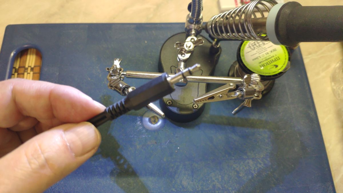 Иногда найти подходящий шнур сложно. Можно попробовать подсоединить новый штекер, просто обмотав контакты соответствующими проводами