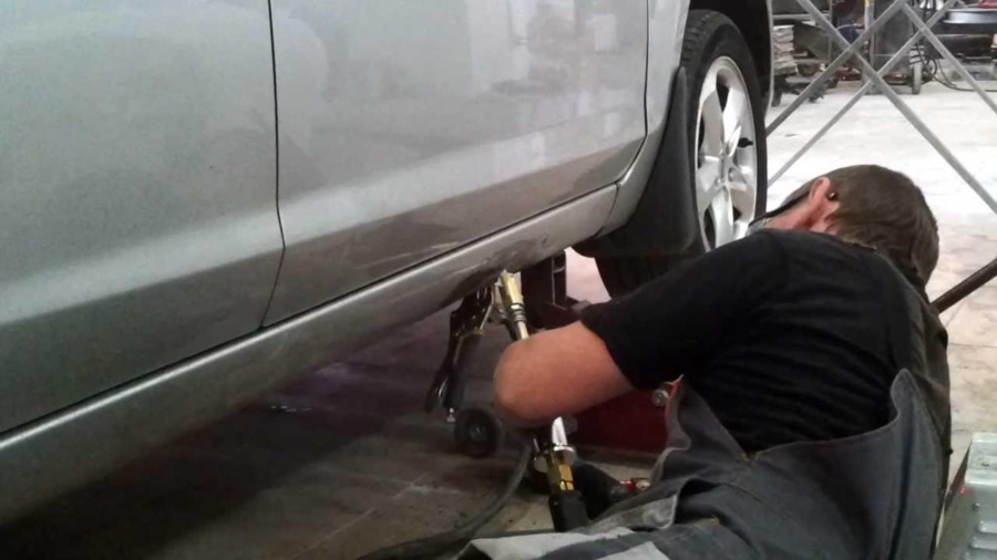 Перед работами необходимо снять минусовую клемму с аккумулятора, вывесить авто на домкрат. Как выпрямить порог на автомобиле своими руками мы рассмотрим по шагам: