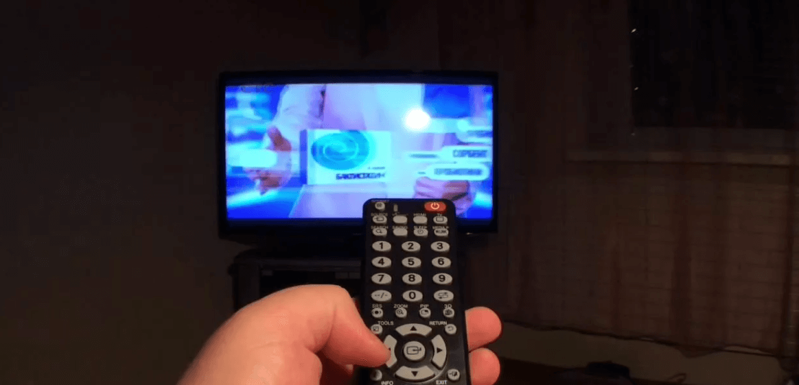 - Первое действие – включить ТВ, направить ПДУ на него.