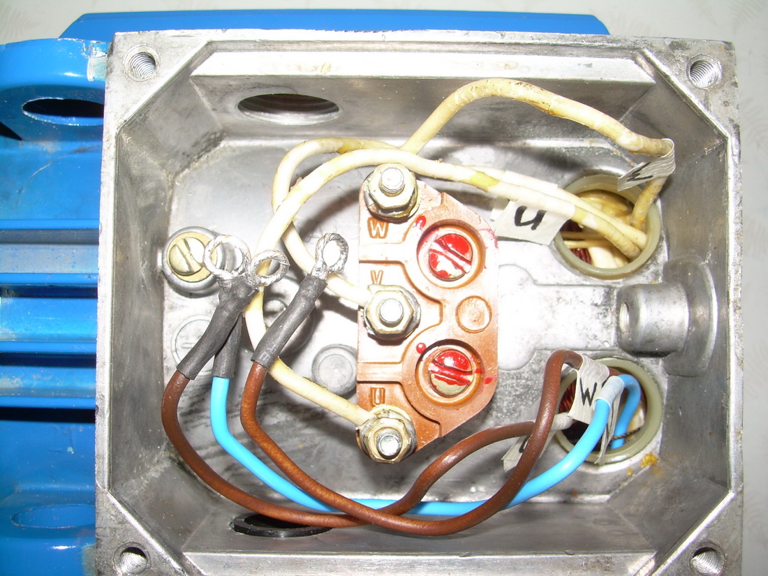 В его клеммной коробке шесть резьбовых выводов, обозначенных литерами с цифрами W2 и W1, U1 и U2, V1 и V2. Чтобы двигатель вращался по часовой стрелке, коммутация производится следующим образом: